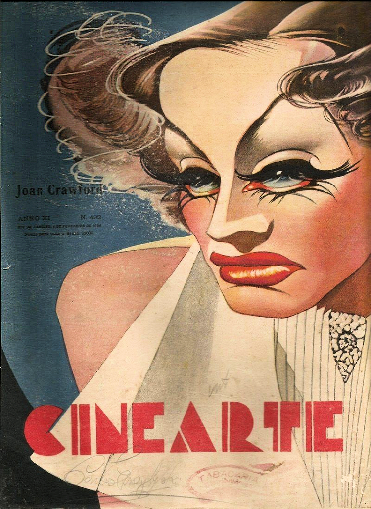| Caricature of Joan Crawford on the cover of Cinearte, February 1936. |