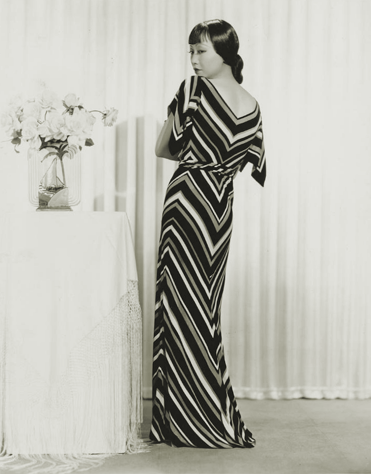 Anna May Wong (3 January 1905, Los Angeles – 3 February 1961, Santa Monica), American actress. Considered to be the first Chinese American movie star, as well as the first Chinese American actress to gain international recognition. Known for her beauty and personal style, she had a career that included silent film, sound film, television, stage, and radio. But her film career was severely handicapped because of her race - the parts that were offered to her were usually little more than crudely stated Asian stereotypes - and by the miscegenation laws of the time that effectively kept her from taking leading roles.